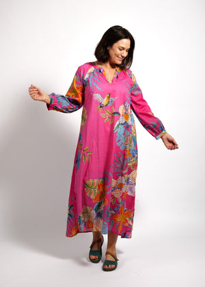 Layla Dress in Pink Birds