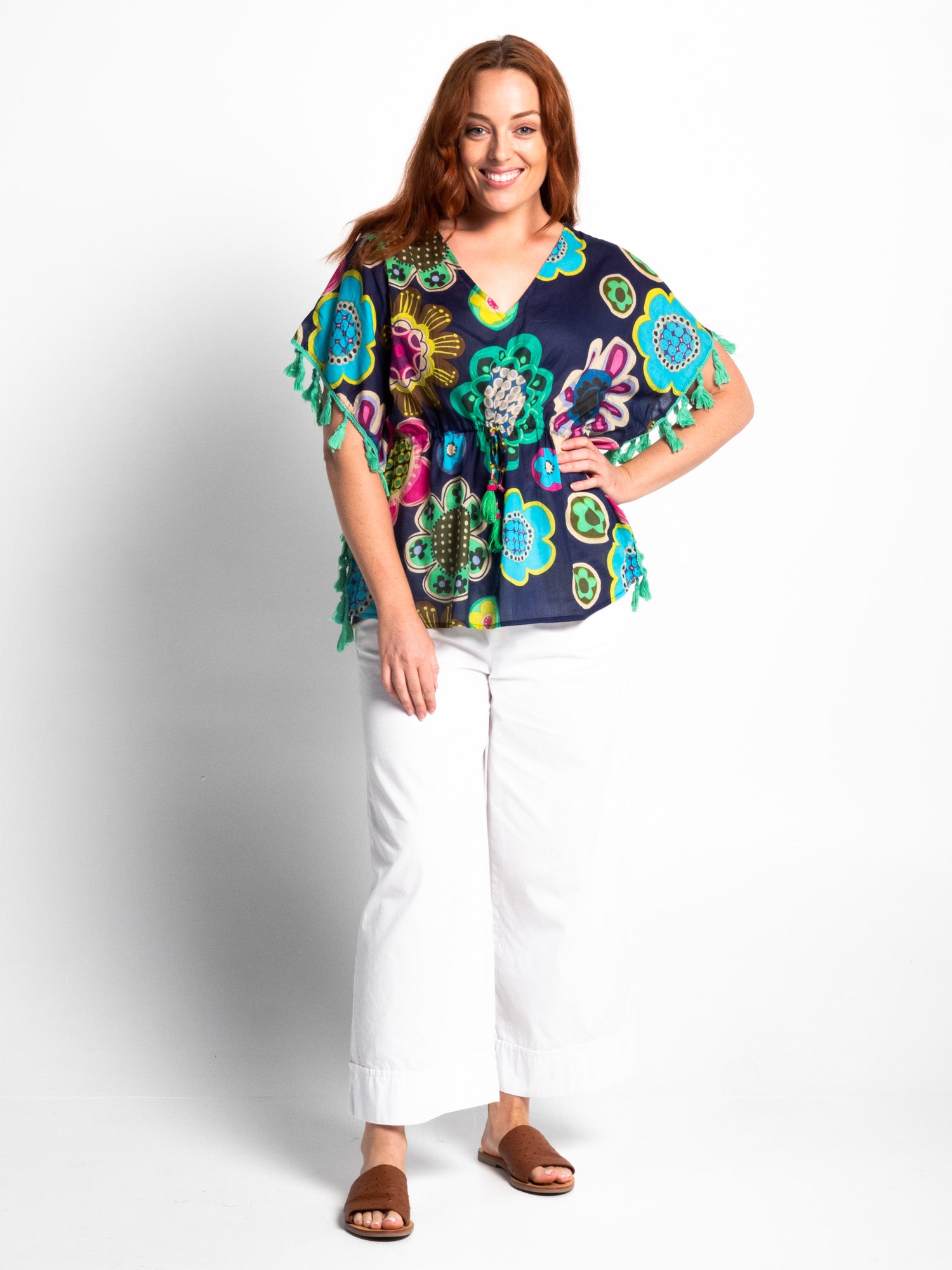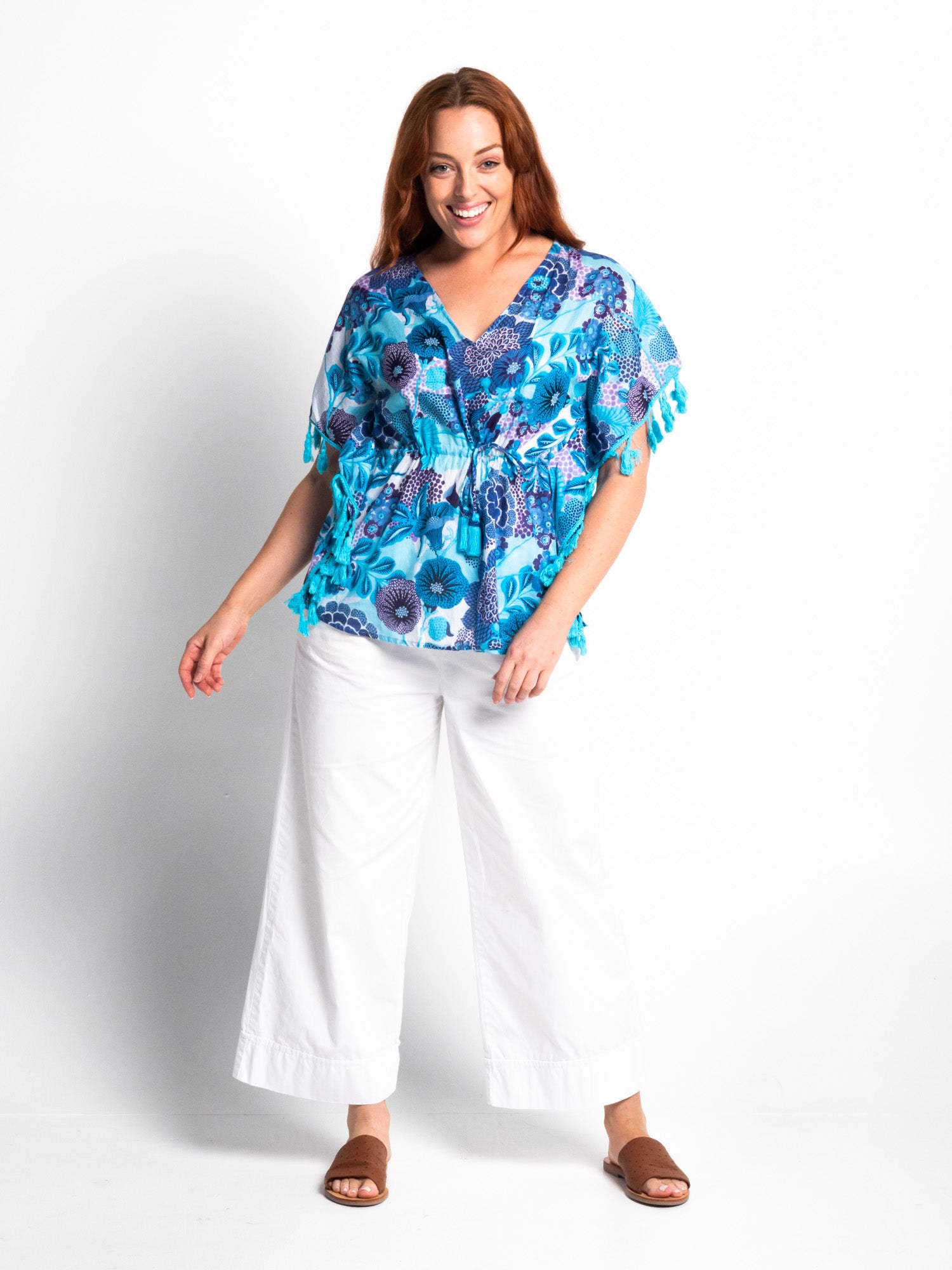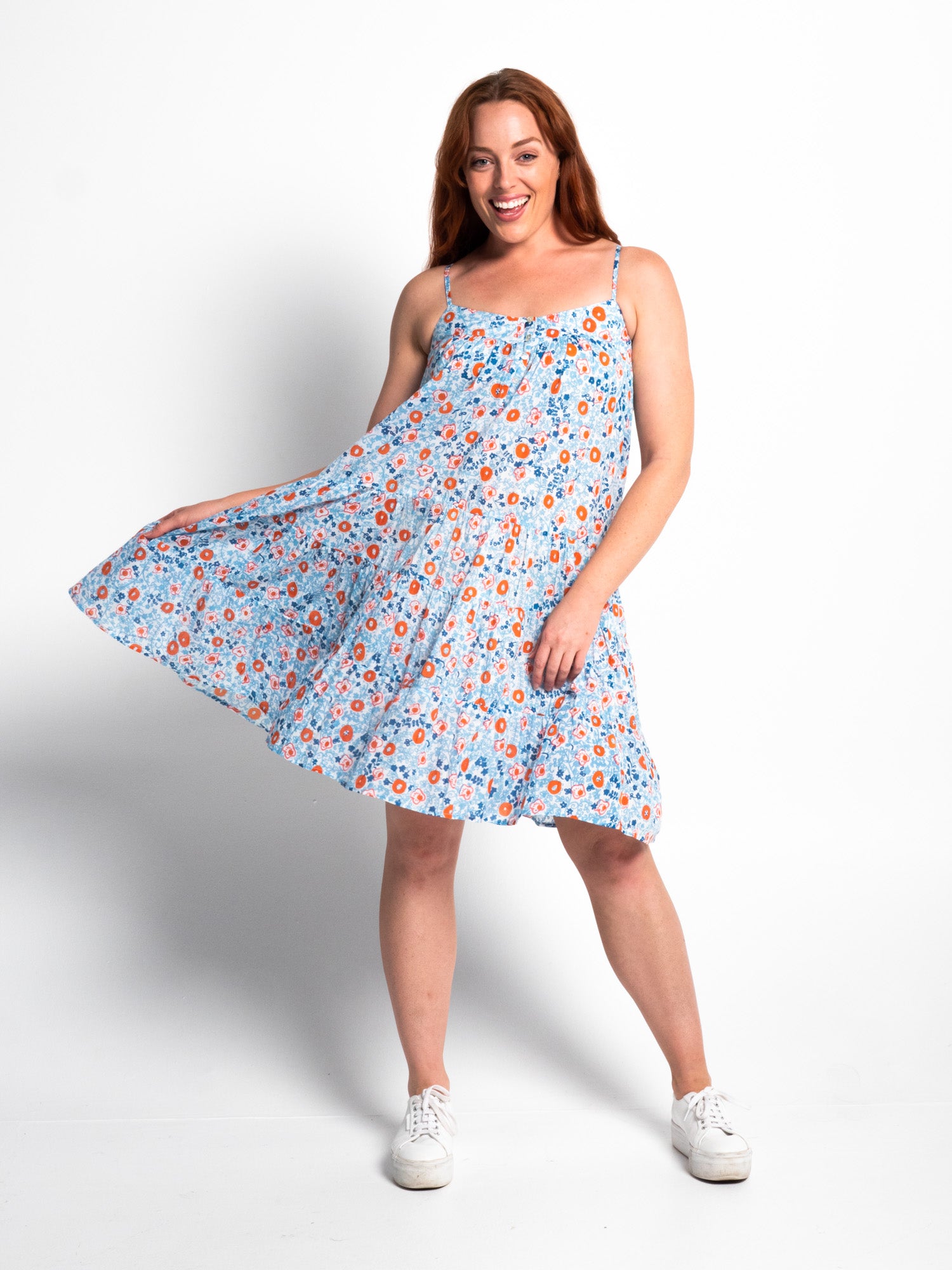 Pure cotton throw over or short dress for high summer in a convenient carry pouch for beach bag or tote.