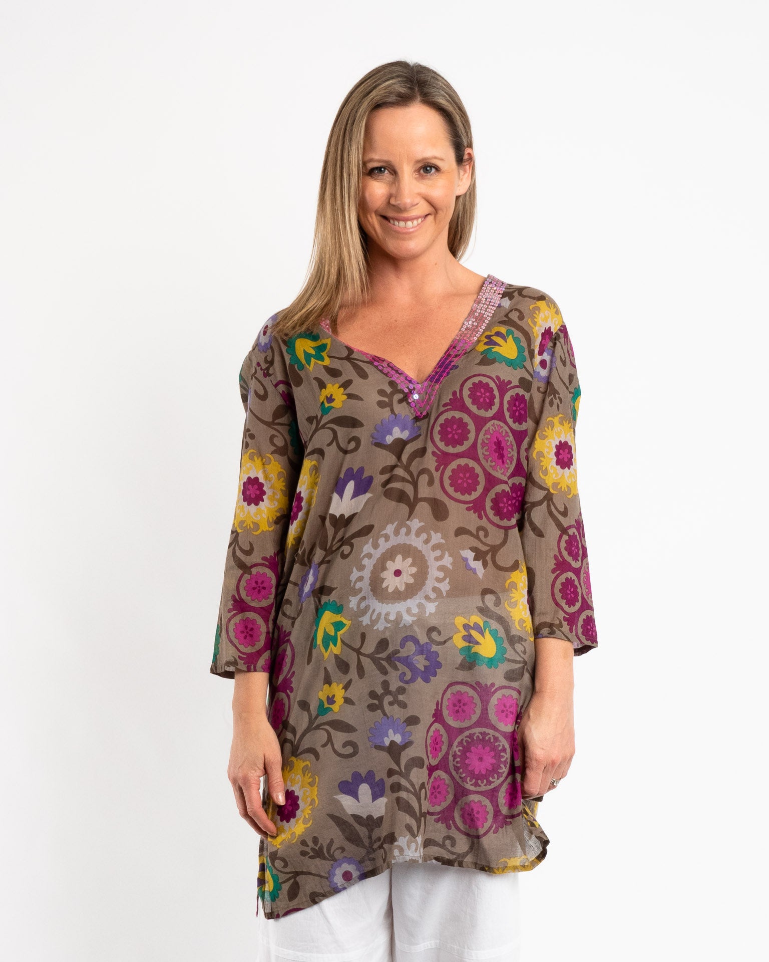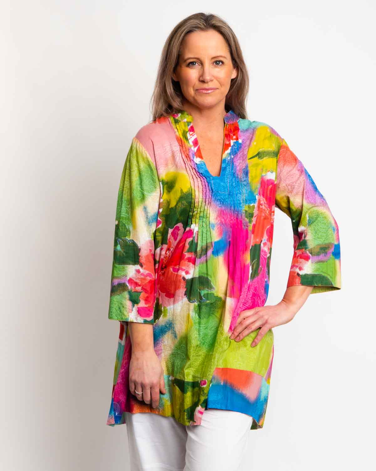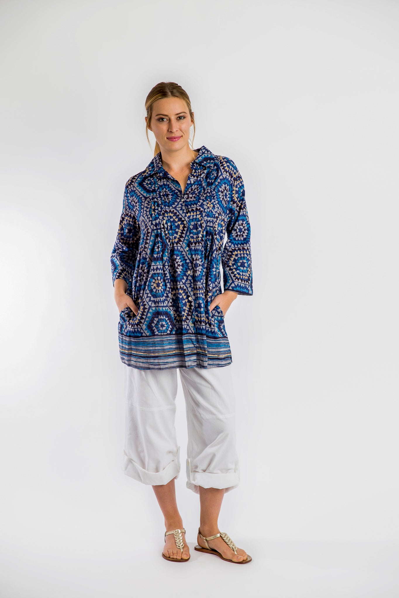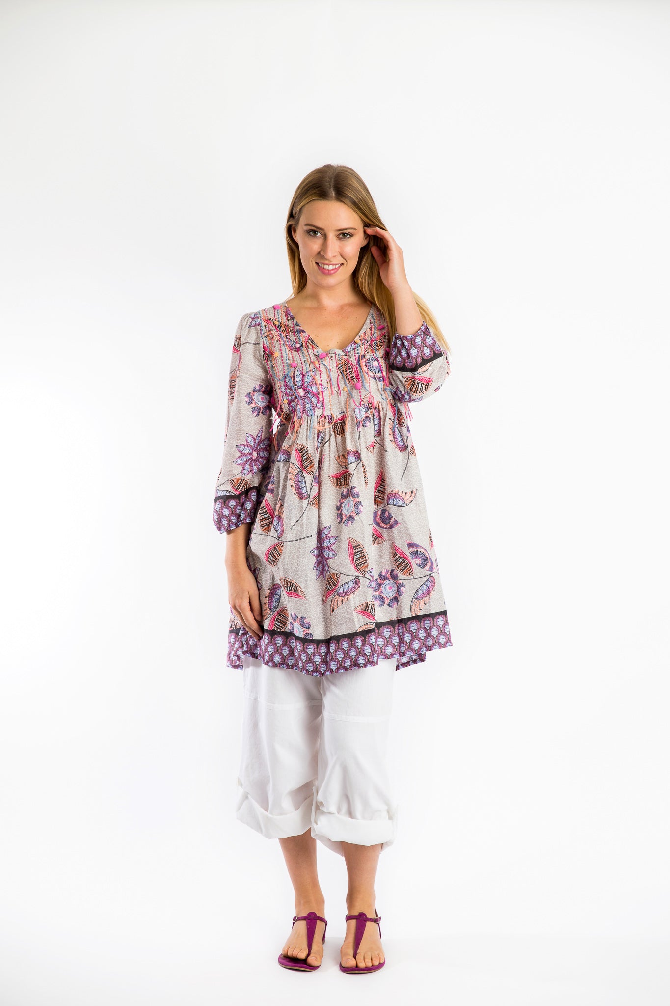Shop our Plus Size and Curvy Cotton Tops. Colourful Cotton prints in generous shapes, either Free Size or sized including XL and XXL. Great for sizes 16-18 and above.